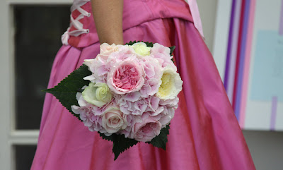 A profusion of pink was the order of the day, Heather's wedding bouquet included David Austin Roses Miranada & Patience, Pale Pink Hydrangeas, Fresh Lily of the Valley and Sweet Avalanche Roses.